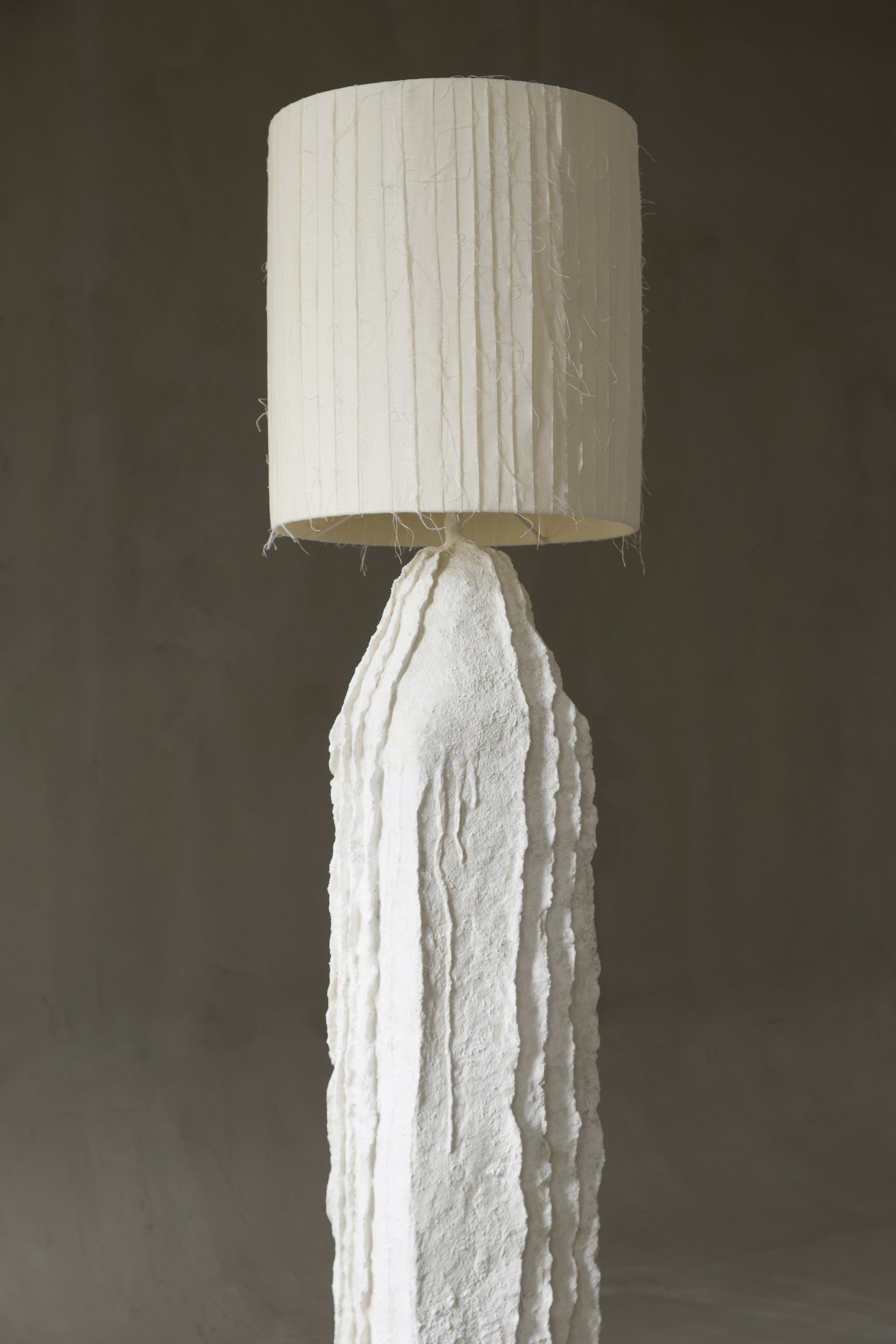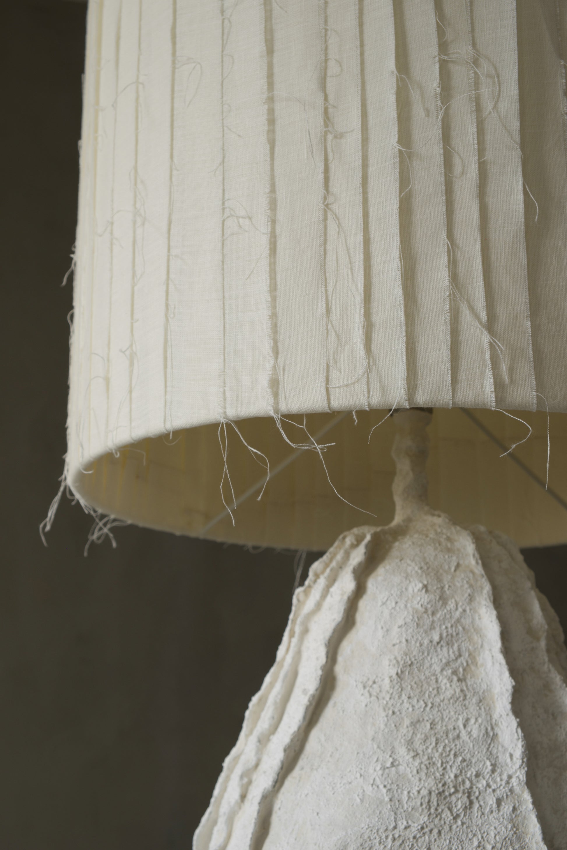 The lampshade is made from natural linen, softly diffusing the light and introducing warmth to the mineral character of the base.