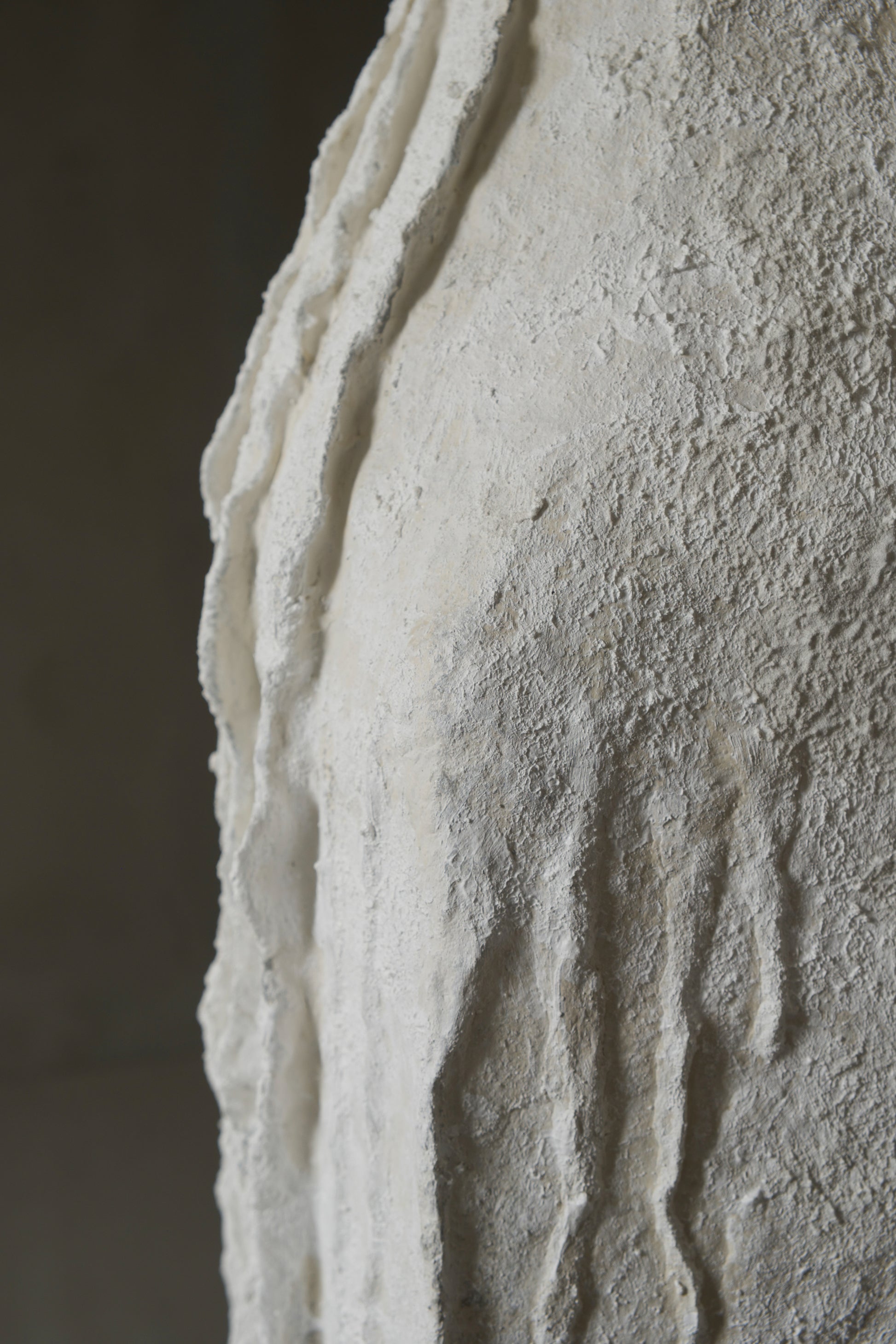 Its surface reveals deep organic textures reminiscent of eroded stone formations and geological structures shaped over time.