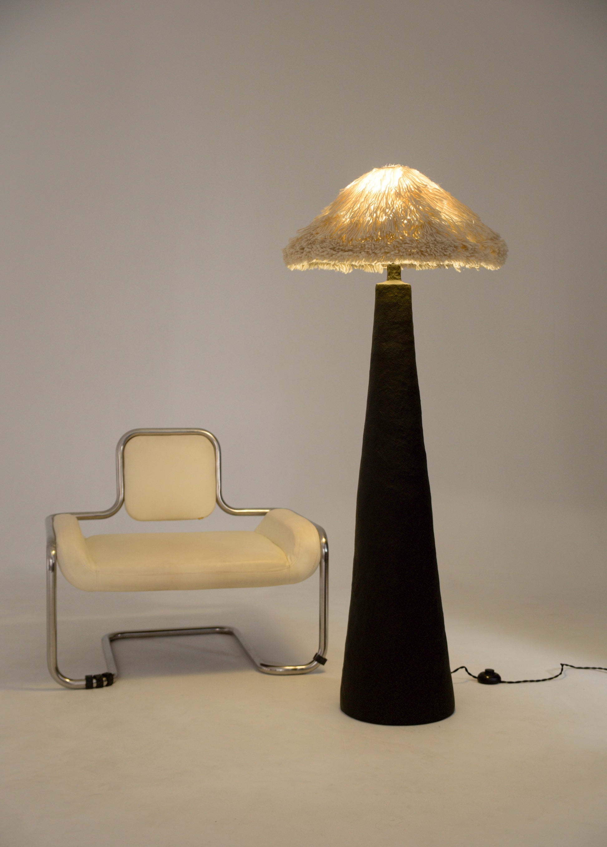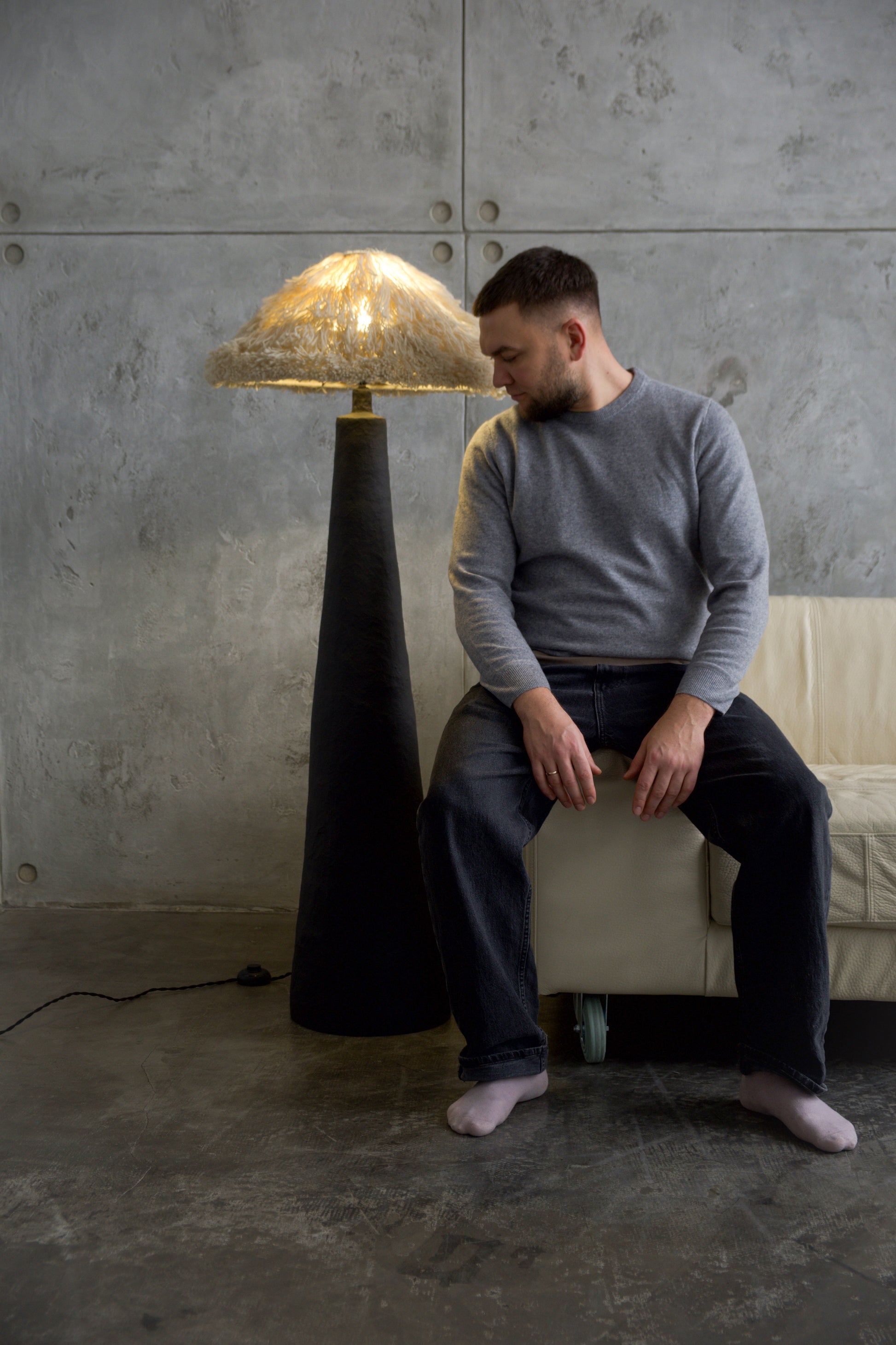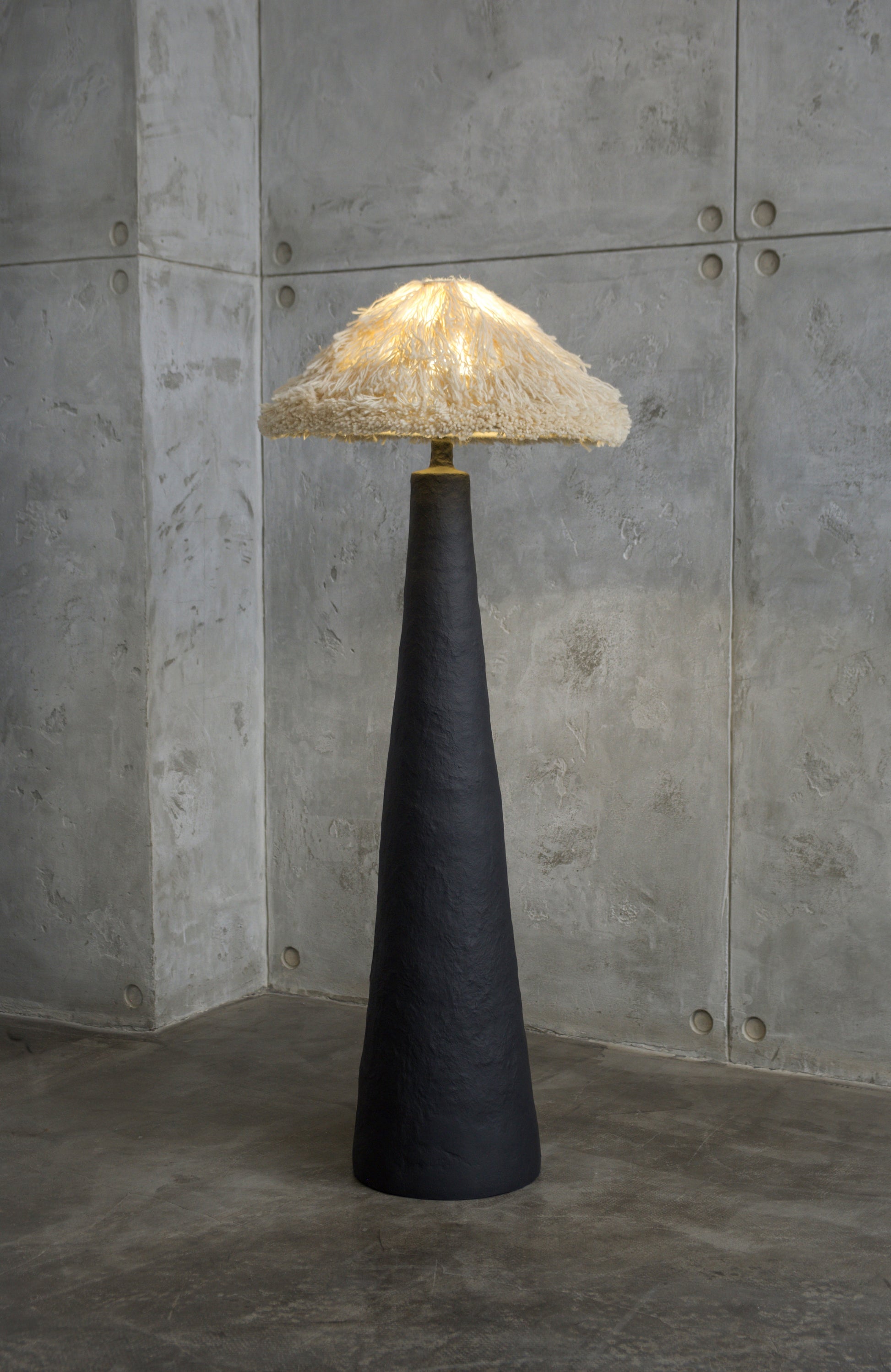 Sazha is a sculptural floor lamp that explores material presence, weight, and quiet monumentality.
