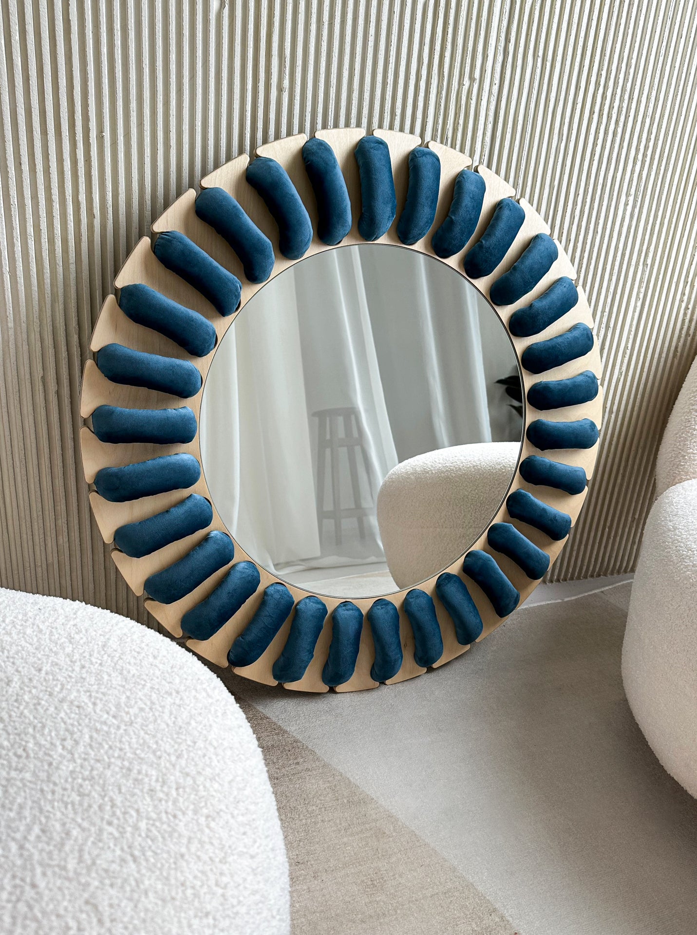 Transform your space with the SUNNY Mirror — a handcrafted statement piece that fuses sculptural elegance with rich, tactile design. Wrapped in luxurious velvet cord, its bold frame adds texture and warmth, while the soft curves bring balance and sophistication to any room.